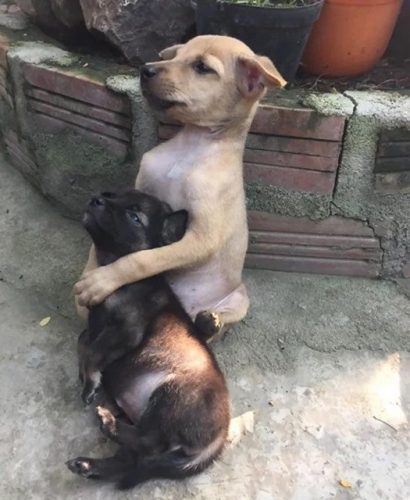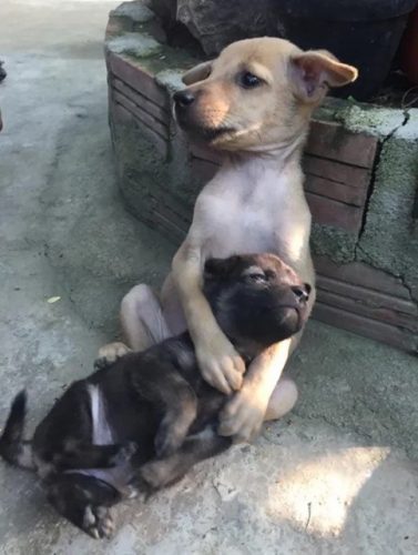 Понятно, что эти щенки пережили множество испытаний и трудностей, так как они доверились не сразу монахиням. Рыжий щенок не хотел отпускать своего младшего брата и долгое время не расставался с ним ни на шаг.