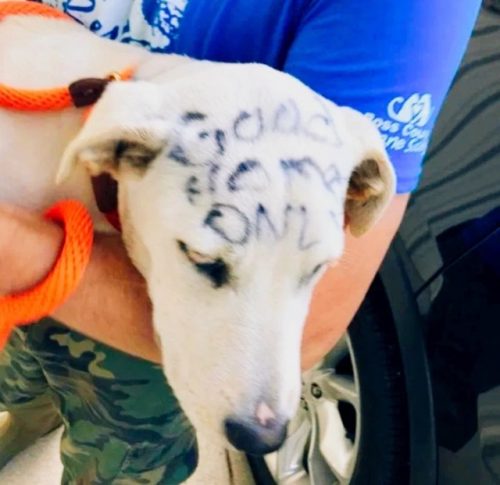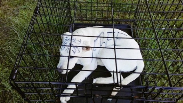 Каким образом такой несчастный пес оказался здесь? Он был брошен и оставлен на произвол судьбы, в надежде, что кто-то заметит его и заберет домой. Возможно, предполагалось, что в такой атмосфере, где нет места одиночеству и несчастью, найдутся люди, способные принять его. Впечатляющее послание было написано прямо на теле животного, чтобы вызвать еще больше сострадания.