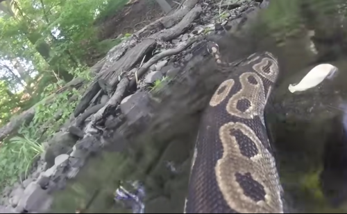 Один натуралист решил расширить наши знания о поведении змей в дикой природе. Он разработал специальную камеру, которую удалось установить на королевского питона, и настроил удаленный доступ для записи его повседневной жизни.