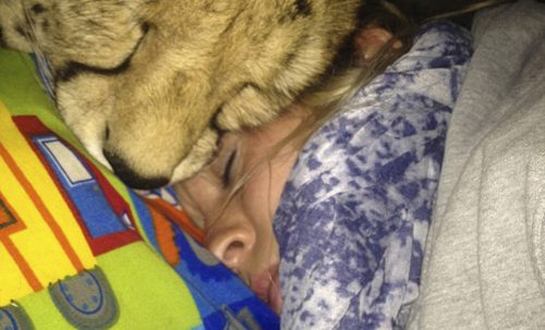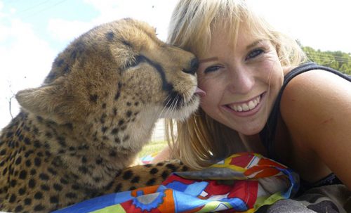 Одна девушка совершила подвиг, спасая маленького гепарда от браконьеров. Вначале она намеревалась освободить животное, после выходя его дома. Однако гепард не захотел уходить и остался с девушкой навсегда, превратившись в преданного и доброго спутника, поведение которого напоминает большую домашнюю кошку.