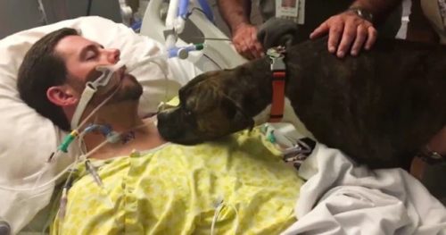 Сестра умирающего парня, Мишель, привела собаку в палату. Все присутствующие не могли удержать слезы, так трогателен был момент прощания.
