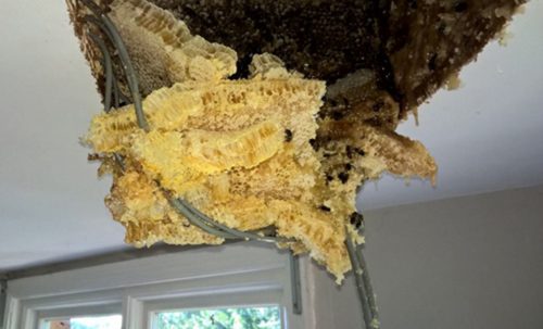 В один вечер владелец дома заметил небольшое пятно на потолке. Он провел пальцем по нему и понял, что через слой краски проступает мед настоящий. Мужчина быстро сообразил и надел защитный комбинезон, прежде чем снять потолочную панель, и вот что он обнаружил: за потолком пчелы создали настоящий улей.