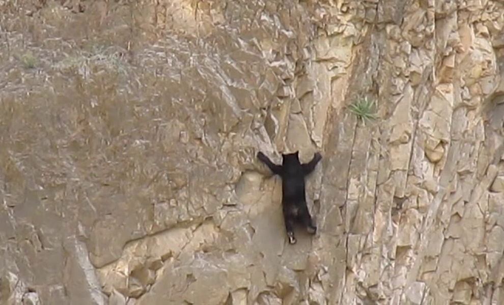 Сотрудник парка национального наблюдал через бинокль за ущельем, когда на скале он заметил движущееся темное пятно. Джо Пеши быстро настроил фокус и осознал, что перед ним медведь настоящий, но у этого животного были необычные способности — оно взбиралось по вертикальной скале, словно у него на лапах были присоски.