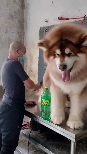 Когда семья купила щенка у друга, они даже не представляли, насколько быстро он будет расти. За всего 5 месяцев пес вырос до размеров настоящего медведя, оброс мехом таким же густым. Видео из салона грумеров показывает, как пес стоит уже выше человека и превышает его размеры минимум в полтора раза.
