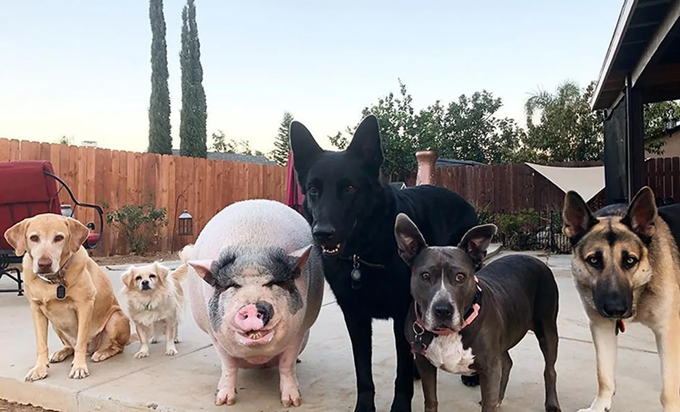 Заметив у свинки странное поведение, хозяева купили ей ошейник, как у собаки настоящей. На видеозаписях, свинка и собачья компания выглядят как персонажи из диснеевского мультфильма, создавая забавные и незабываемые моменты.