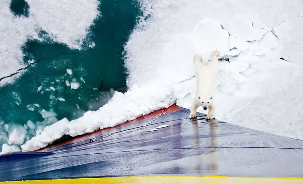 Очевидно, что мы столкнулись с очень молодой медведицей. Что касается ее медвежат, они просто не понимали, что такое ледокол, — говорит один из членов экипажа.