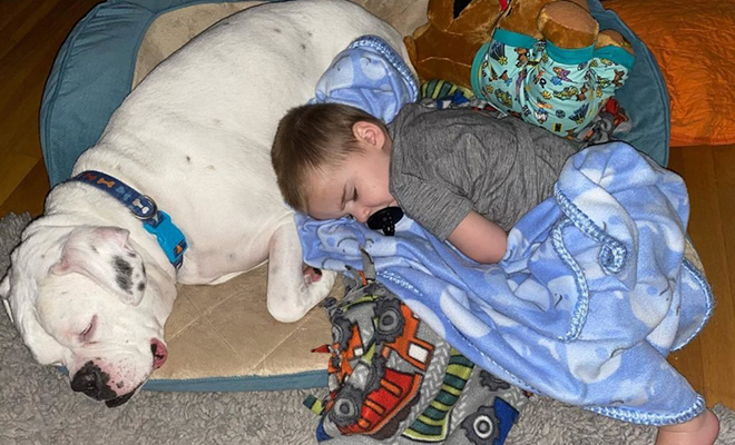 Финн и семейный пес по имени Брутус были друзьями с самого рождения малыша. Пес никогда не оставлял его и предпочитал проводить время в его комнате, несмотря на другие места в доме.