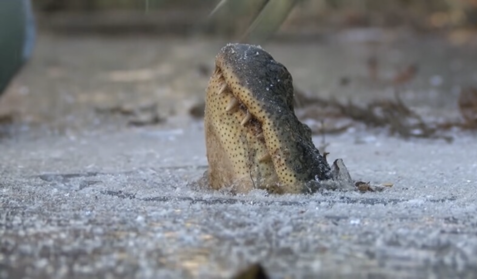Сотрудник парка национального специально приблизился к проруби на местном водоеме, где обитало множество крокодилов и аллигаторов. Летом рептилии чувствовали себя прекрасно, но с наступлением холодов они исчезали из вида смотрителей. Мужчина снял видео, в котором показал, как эти хищники справляются с резким похолоданием и проводят большую часть зимы подо льдом.