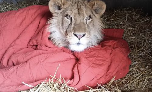 Два года назад богатые техасские заводчики подарили своему сыну маленького львенка по имени Ламберт. Однако, воспитание этого маленького хищника оказалось непростой задачей. В конечном итоге, зоозащитники выкупили животное у нерадивых хозяев, но даже на новом месте Ламберт продолжал испытывать проблемы. Лев не мог заснуть и мучился от бессонницы. Но спустя неделю стало ясно, что у Ламберта был особый запрос — ему требовалось одеяло!