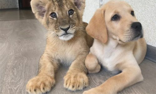 Однако одна из сотрудниц питомника решила помочь маленькому львенку. Она привезла щенка лабрадора по имени Эльза и заметила, как заинтересовался львенок. Не задумываясь, смотрители пустили щенка в вольер к маленькому львенку, и их встреча оказалась удивительно дружелюбной и милой.