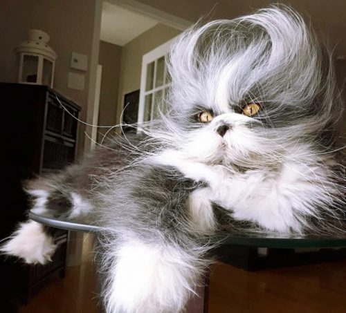 На первых порах Натали пыталась стричь необычного своего кота, но потом она сдалась, так как волосы быстро отрастали, особенно на мордашке. Со временем хозяйке такая странная внешность кота начала нравиться.