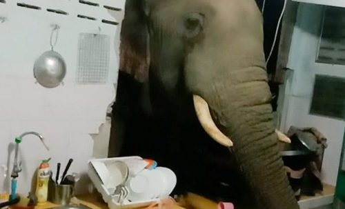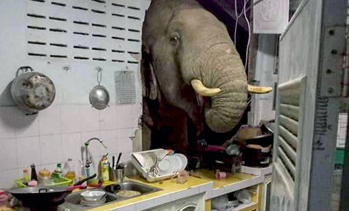 Не теряя ни минуты, семья Пхунгпрасоппорн поделилась захватывающим видео случившегося на своей странице в социальной сети Фейсбук. Рачадаван рассказала, что странный шум разбудил их, но никто из них не ожидал увидеть в своей кухне неожиданного гостя в виде слона. Как только они включили свет, стали ясными причины происходящего: слон прошел через огромную дыру в стене и, опершись на свой громадный хобот, принялся рыскать в шкафах в поисках съедобного.
