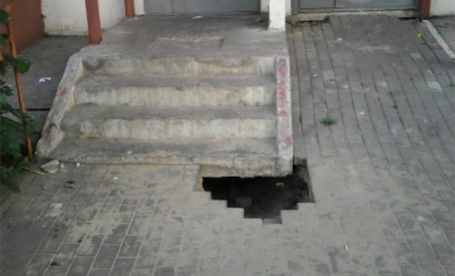 Несколько недель назад у дома произошло подмывание песка и часть брусчатки обрушилась, образовав глубокую яму. Долгое время не могли закрыть эту яму, но, наконец, рабочие приехали и заделали её новым слоем брусчатки. Однако, в спешке, они не стали проверять коллектор. Судьба распорядилась иначе, и случайно нашедшая приют в этой яме бездомная собака оказалась замурованной под землей.