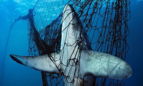 Акула попала в сеть защитную, которую часто ставят вдоль пляжей австралийских. Казалось, размер ячеек оказался слишком великим, и акула практически полностью запуталась в них.