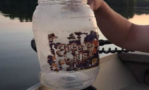 Очень рано утром семья Харт отправилась на рыбалку к озеру Марш-Миллер. Еще не успели они закинуть снасти, как в воде заметили необычную фигуру, быстро приближающуюся к лодке. Не прошло и минуты, как стало ясно, что это медведь, который несет на голове большую банку. Животное заметило людей и, казалось, решило обратиться за помощью.