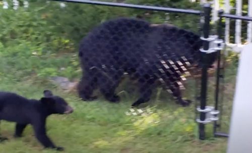 Медведи наслаждались прохладным освежением в течение приблизительно десяти минут, прежде чем заметили, что за ними наблюдают. Как только они увидели хозяев, немедленно побежали к забору, где, как выяснилось, имелась дыра. Они быстро скрылись, оставив владельцев в недоумении и с уникальным видео на память о неожиданной встрече.