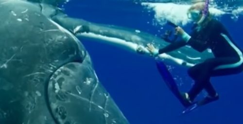 Погружаясь в подводные глубины с целью заснять удивительный мир океана, женщина-биолог внезапно стала свидетелем необычного явления. Во время погружения она не заметила, как сбоку к ней приблизился кит, который слегка коснулся её плавника. Этот неожиданный контакт сначала насторожил дайвера, но затем она поняла: кит пытался защитить её от акулы, появившейся в непосредственной близости.