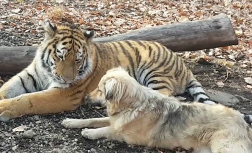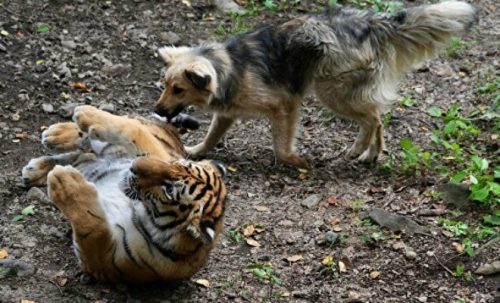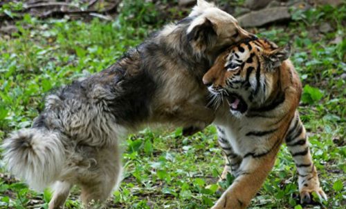 Но собака Табаки словно чувствовала, что маленькому тигру нужен друг, и очень быстро подружилась с ним. Когда ветеринары увезли Шерхана в клинику на несколько месяцев, тигр очень по нему скучал.
