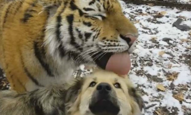 Мужчина нажал кнопку записи на камере, желая запечатлеть удивительный момент встречи двух необычных друзей. Собака по имени Табаки и тигр по кличке Шерхан делили друг с другом игры, когда тигр был еще совсем младенцем, но потом им пришлось расстаться на некоторое время.