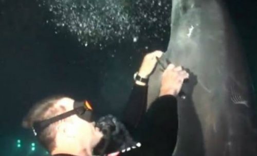 Это понял не сразу дайвер, первоначально он подумал, что дельфин просто решил поиграть. Но необычное поведение млекопитающего в воде заставило его взглянуть внимательнее на силуэт дельфина. Придя в себя, он заметил леску на плавнике, которая, очевидно, мешала дельфину плавать как полагается.