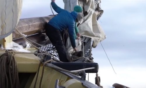 Так как дрейфующие айсберги чрезвычайно хрупки, рыбаки причаливали к льдине с особым осторожностью. Наконец, они зафиксировали шхуну, и двое из них спустились на айсберг.