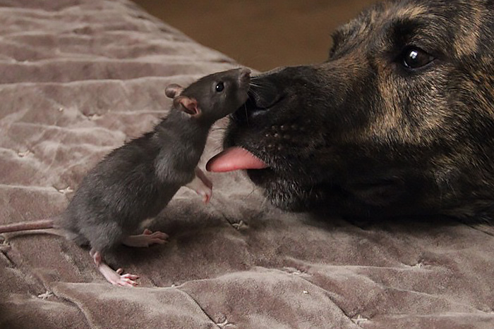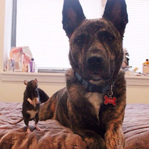 Как помочь животному, которое всегда было полно жизни? Хозяева были в недоумении и даже обратились к ветеринару, который, к их удивлению, заявил, что собака абсолютно здорова. Однажды к ним приехали гости, которые привезли с собой нового домашнего питомца – крысу, приобретенную в зоомагазине. Осирис сразу же проявила интерес к новому гостю, но вместо того, чтобы показать агрессию, она вела себя с крысой как с другом.