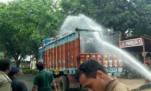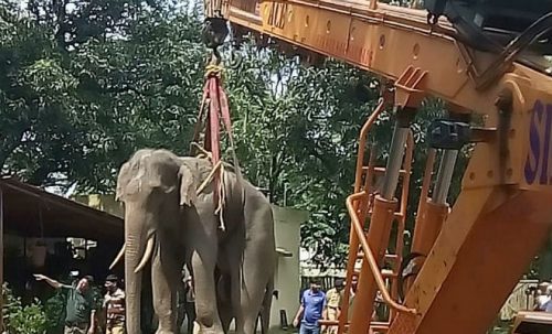 Затем к месту происшествия привезли кран и грузовую машину. Под животное подложили широкие ленты, чтобы не нарушить его кожный покров, а затем кран аккуратно начал поднимать слона.