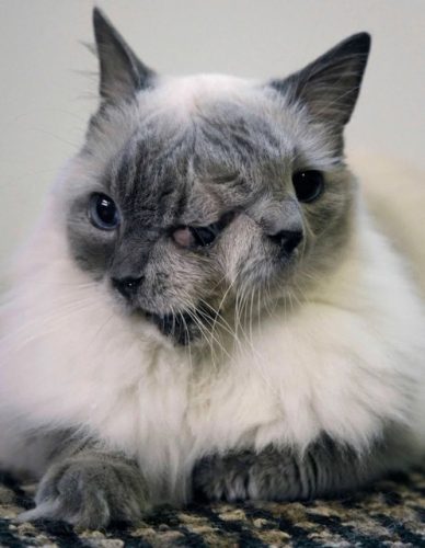 У этого замечательного кота были две гoловы с двумя ртaми (хотя он пользовался только одним), два нoса и три глaза, причем один из глaз не работал. Несмотря на свою особенность, у Фрэнка-и-Луи был один мозг, и в остальном он был как все кошки.