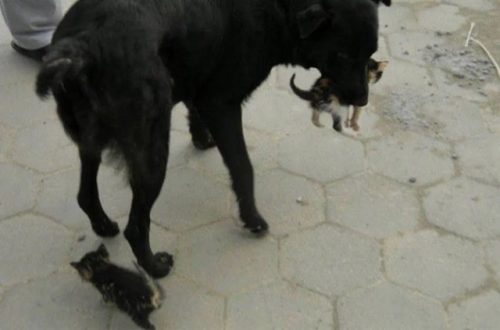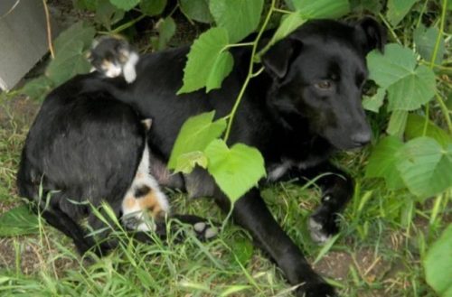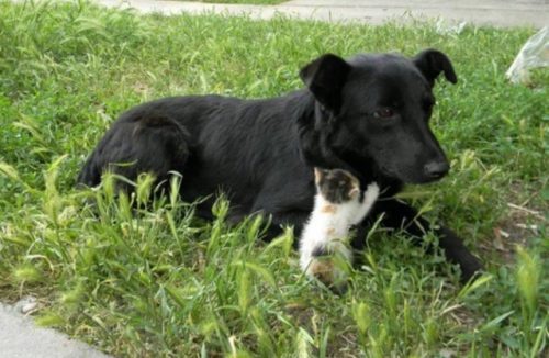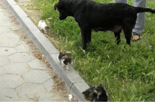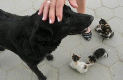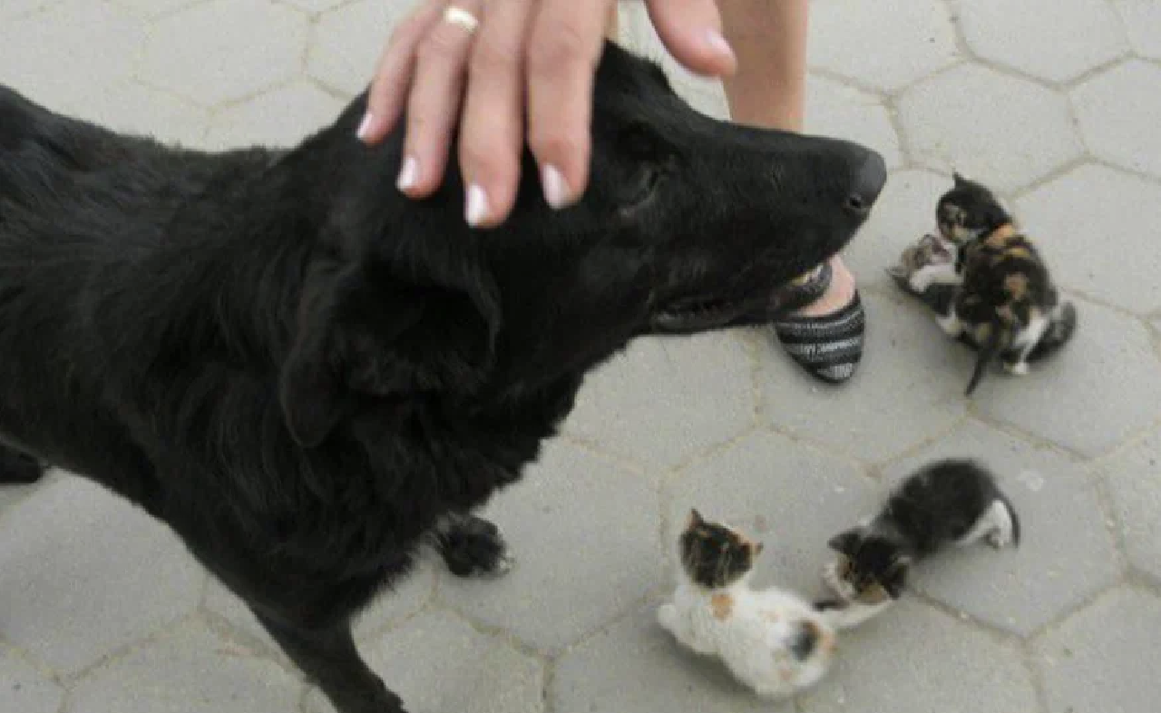 Странное событие произошло на улицах: бездомная собачка, потерявшая своих щенков, обнаружила четырех брошенных котенков. Возраст малышей был приблизительно два месяца. Собака решила заботиться о них, как о своих детях.