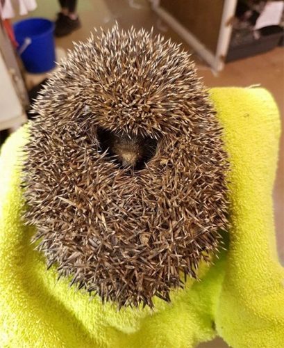 С осторожностью, и даже с некоторым опасением, ветеринары начали расчищать грязь, полагая, что там может быть змея или что-то ещё. Однако вскоре стали видны маленькие иголки, а затем и лапки. Оказалось, что это был заблудившийся и замотанный в грязи еж. Никому даже не пришло в голову, что собака могла «закатать» именно этого маленького обитателя леса.