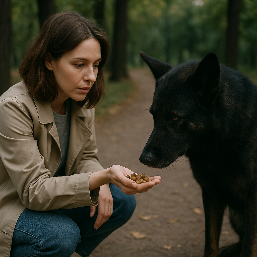 В понедельник она пришла с пакетом сухого корма. Как и раньше, собака вышла из кустов — чёрная тень, немой взгляд.