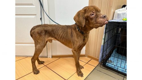В начале марта на одной из улиц города супружеская пара заметила крупную собаку редкой породы — бордоского дога. Животное выглядело измождённым и отчаянно нуждалось в помощи. К счастью, нашлись люди, не прошедшие мимо чужого горя: они сообщили о псе волонтёрам, и вскоре бордоский дог оказался в приюте.