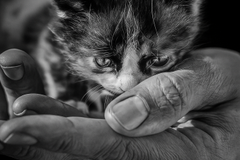 Кот, молча, забрался к мужчине на колени и замурлыкал.