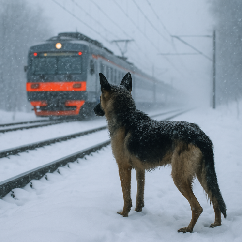 Собака сидела настороженно, будто связанная с невидимой нитью с тем местом, куда укатила электричка. Она поджимала лапы от холода, но не сходила с места — словно чувствовала: что-то случилось.