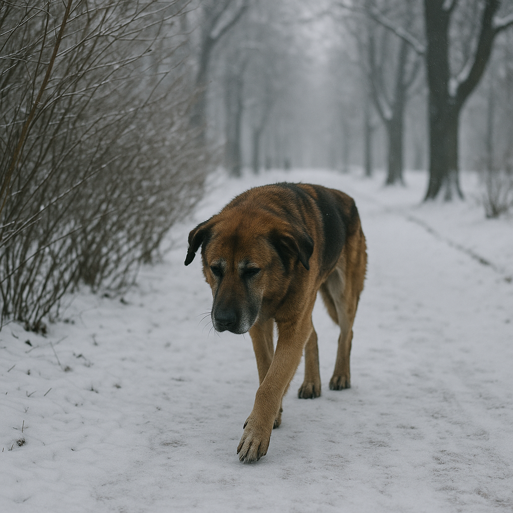 Я осторожно двинулась навстречу. Собака уловила мое движение, остановилась и подняла голову. В её взгляде было так много смысла — и в то же время ни крупицы надежды, ни ожидания чего-то хорошего. Она постояла секунду, затем вновь опустила морду и тяжело пошла дальше. В свете фонаря я заметила на шее темный, истёртый след от ошейника.