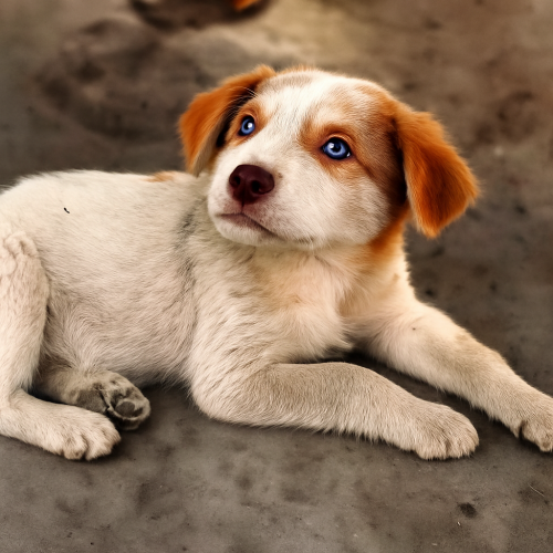 Вдруг он заметил в пустом дворе лежащего щенка. Почему-то это привлекло его внимание, и он остановился, оглядевшись — нет ли рядом хозяина. Поняв, что собака одна, он подошёл ближе.