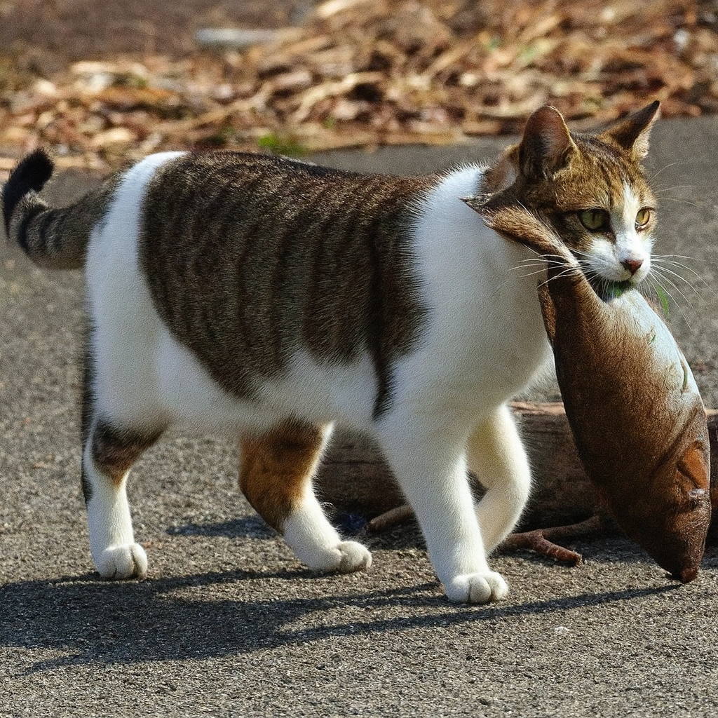 И когда первые удары уже почти готовы были сорваться, кошка появилась снова. Она ловко утащила второго карпа и сиганула прочь.