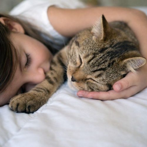 Кошка уже была на кровати рядом с Оленькой. Мурлыча, она тёрлась о ручки девочки, словно что-то нашёптывая и успокаивая. Оленька открыла глаза и, улыбаясь, гладила пушистую гостью.