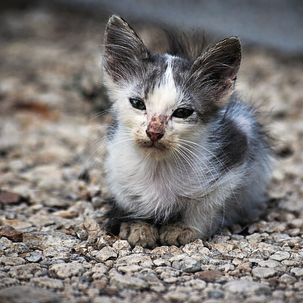 Котёнок, худенькое, замусоленное существо с клочковатой шерстью и слезящимися глазами, смотрел на мир вокруг с полной безнадёжностью. Его взгляд был таким печальным, что девочка буквально споткнулась, почувствовав, как сердце сжалось.