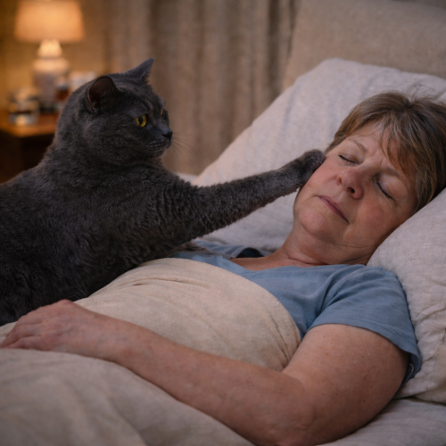 Я задал пару уточняющих вопросов: про храп, паузы в дыхании, необычные ощущения ночью. Всё это уже больше к врачу человека, чем к ветеринару, но если кот реагирует на ночные «сигналы», значит что-то упущено.
