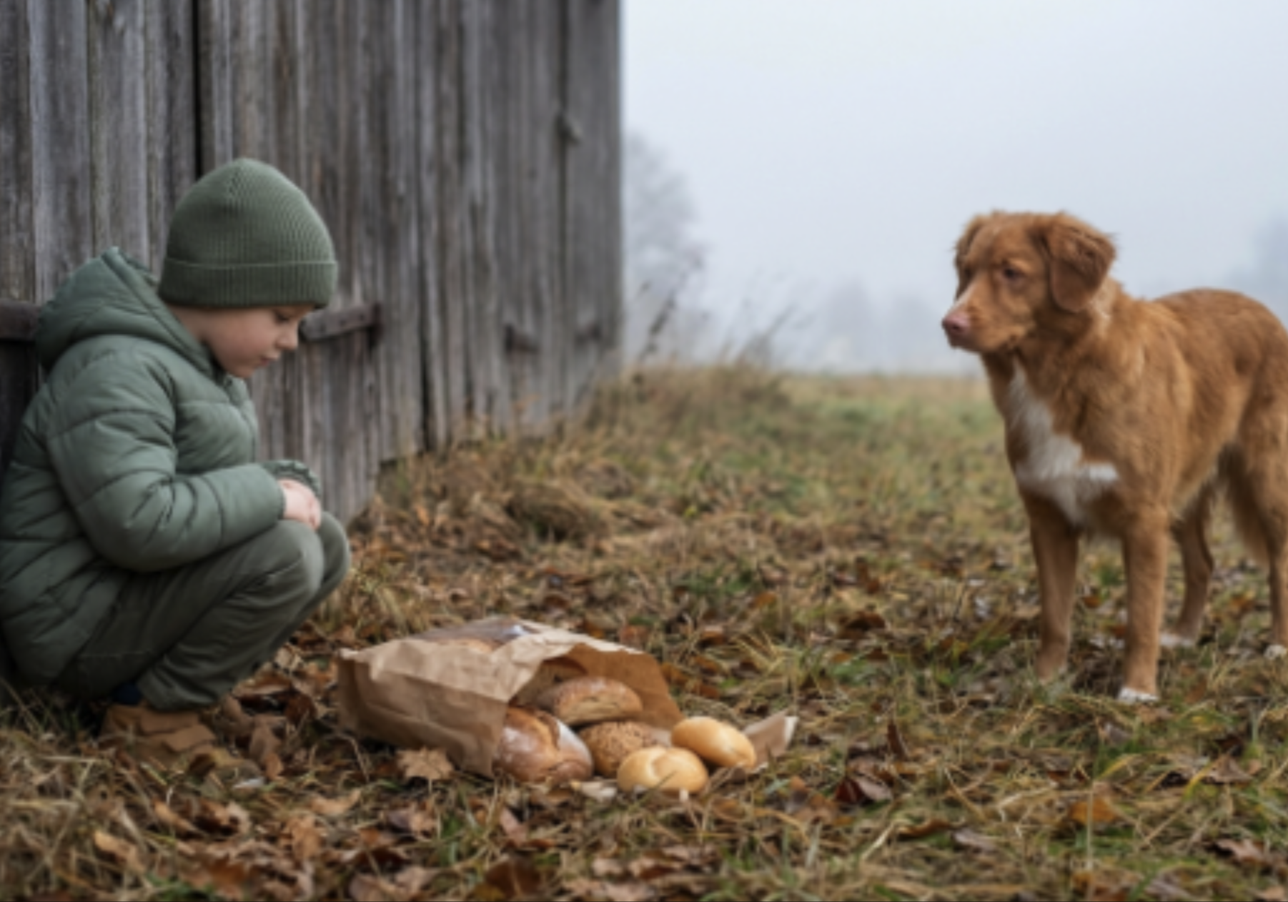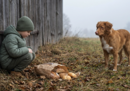 Мой сын. Семь лет. Тайком кормит бездомную собаку, которая при нём даже не ест.