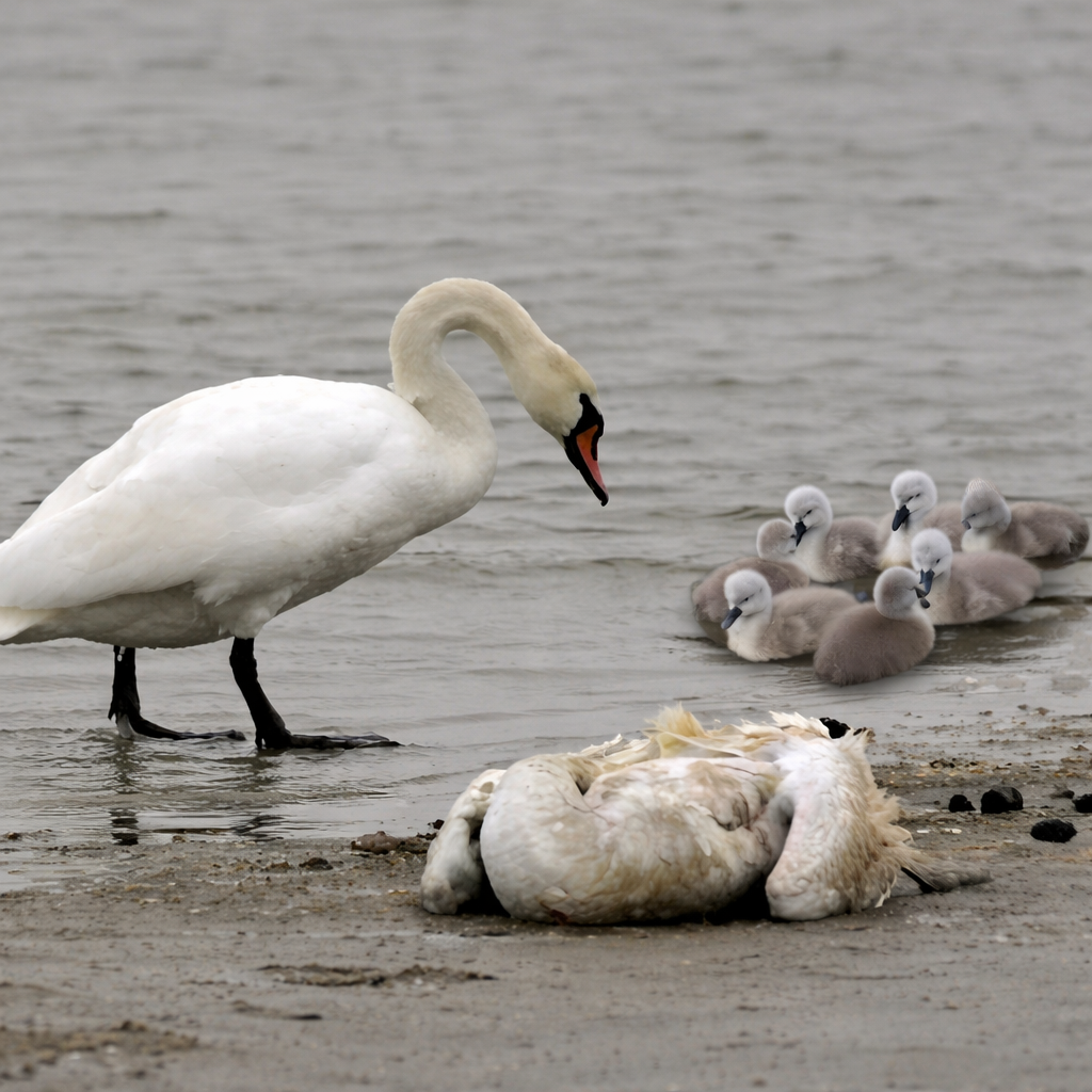 Пришла осень. Птицы собирались в стаи для перелёта, молодые лебеди тревожились, чувствуя зов дальних дорог. Но Гордый понимал: его дети ещё не готовы. Их крылья не набрали нужной силы. И он сделал немыслимое — подавил инстинкт миграции. Они остались зимовать.