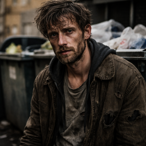 Когда она вышла во двор с очередной табуреткой, взгляд зацепился за мужчину у контейнеров. Одежда на нём была поношенной, лицо — уставшим, измождённым, но в глазах всё ещё теплилась жизнь. Он копался в мусоре, явно пытаясь найти хоть что-то съестное.