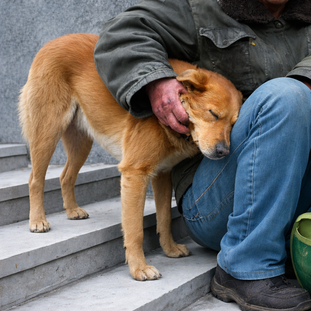 В этот раз вопрос вызвал в ней раздражение. Она уже готова была ответить резко, но вдруг заметила, что к нему прижалась собака — большая, рыжая, измождённая до предела. Она тянула к женщине переднюю лапу и тихо скулила.