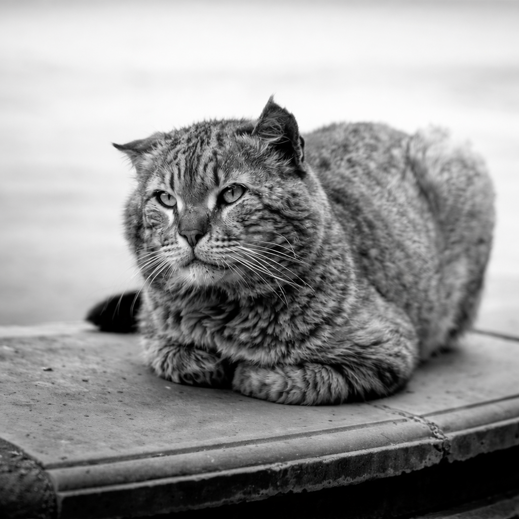 Кот оказался старым. Он лежал прямо на газоне, вытянув вперёд переднюю лапу — похоже, когда-то серьёзно травмированную. Уши, изрядно потрёпанные в уличных схватках и прихваченные морозами, выглядели неестественно короткими.