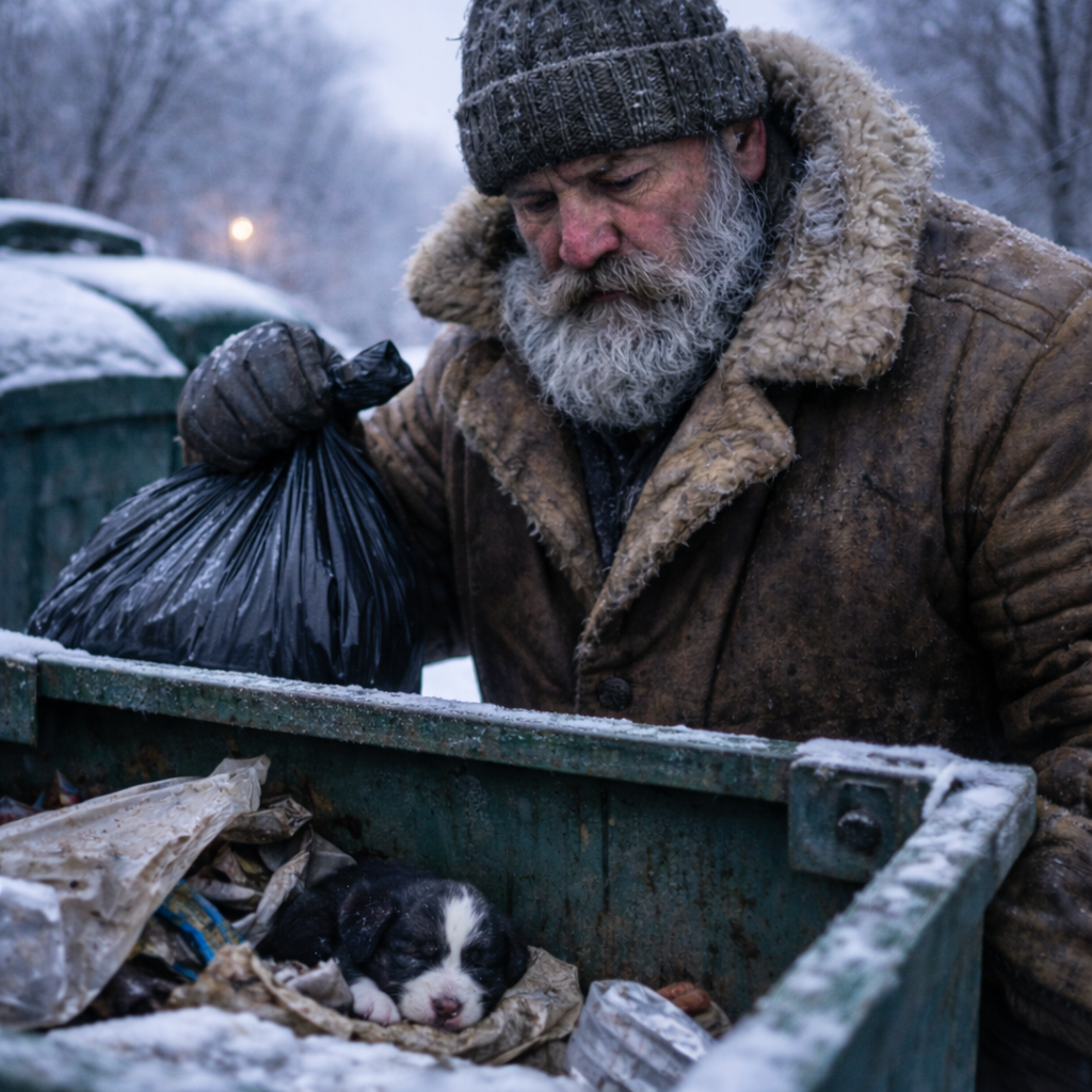 «Может, игрушку старую кто выкинул?» — с надеждой подумал он, но в этот момент один из мешков дрогнул. Тяжело вздохнув, Матвей протянул к нему руку. Из туго завязанного пакета донёсся сиплый писк. Огромные ладони в варежках не слушались. Разозлившись, он сорвал их и бросил на снег, после чего всё-таки развязал узел. Внутри, среди отходов, едва дышал чёрно-белый комочек.