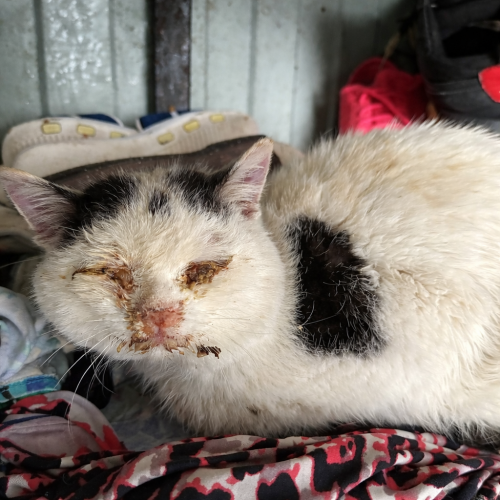 Кота увидела девушка, живущая в доме напротив этого самого садика. Она связалась с нами и попросила помочь с лечением. По фотографиям сразу стало понятно: без срочной помощи он долго не протянет, действовать нужно немедленно.