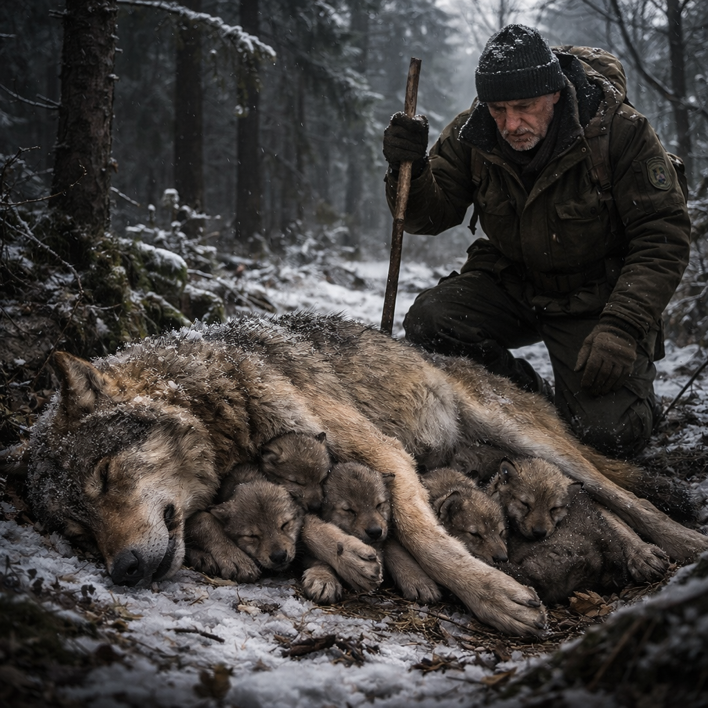 Лесник нашёл пятерых живых волчат под мёртвой волчицей. Закон тайги говорил: не трогай…