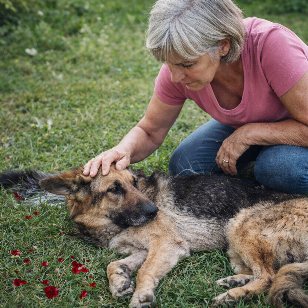 Женщина осторожно приблизилась, опасаясь резкой реакции животного, но овчарка даже не попыталась поднять голову.