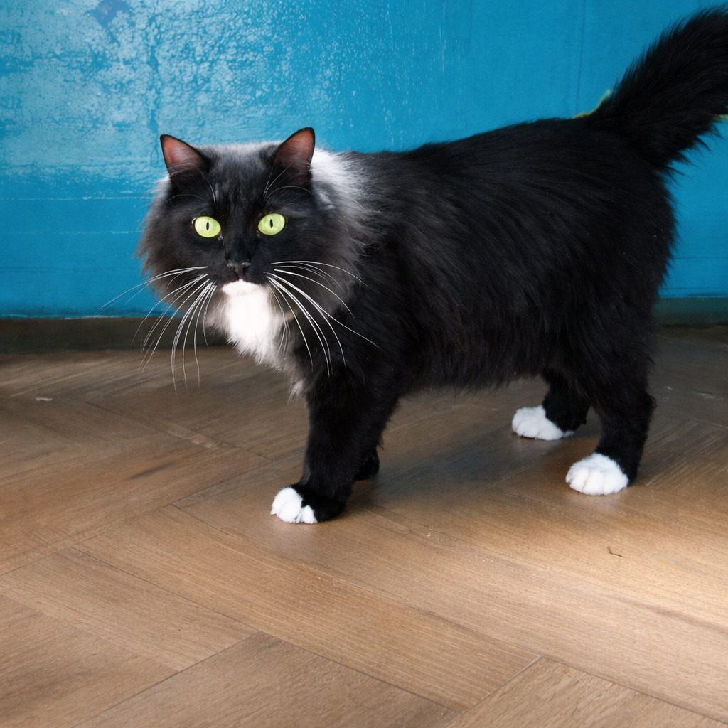 Ах, какая это была кошка! Пушистая, угольно-чёрная, с роскошными усами, яркими зелёными глазами и аккуратными белыми «носочками» на лапках.